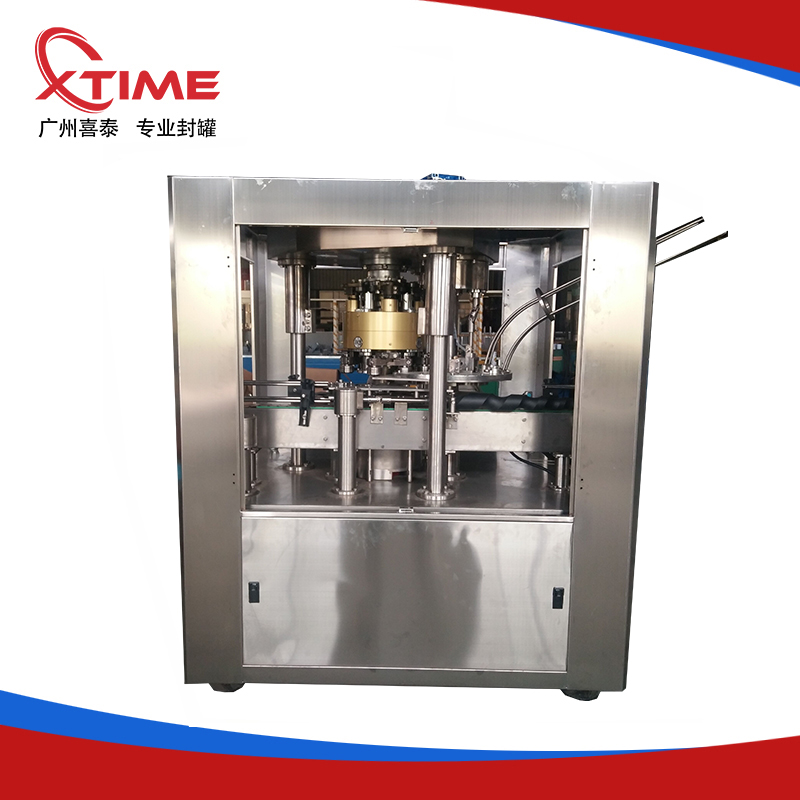 本机适用于封制果汁等食品的圆形实罐,也可以用于空罐封底之用.它具有整机运行平稳、封口质量好、造型美观大方、使用维修方便、触摸屏操作、变频调速。为提高罐内真空度,可按客户要求配置蒸汽喷射装置